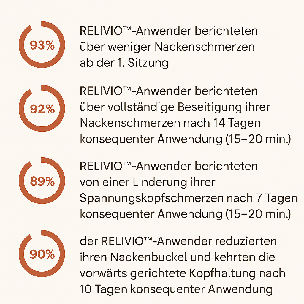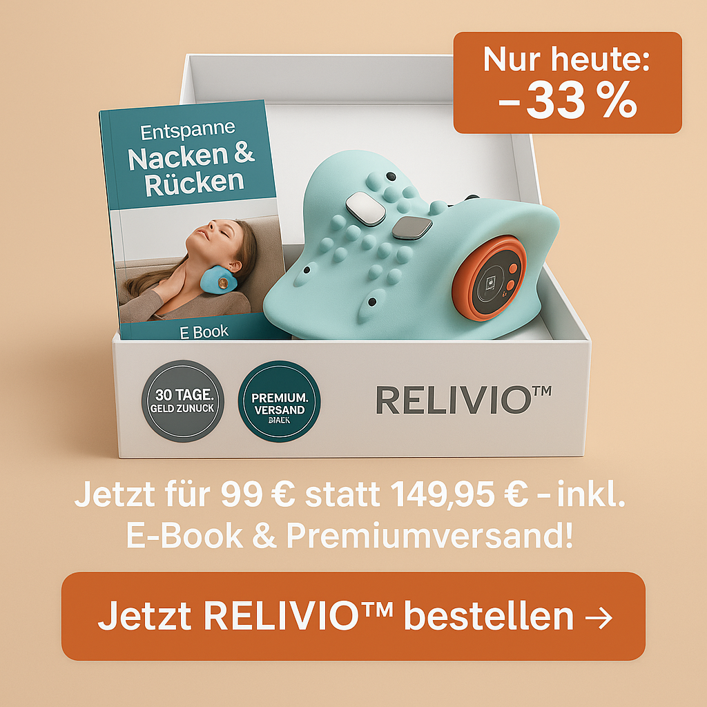 Ich war seit Jahren bei Physiotherapeuten wegen Nackenverspannungen – RELIVIO™ hat mir in 10 Minuten täglich mehr gebracht als 3 Monate Behandlung. Ich nutze es jetzt jeden Abend vor dem Schlafengehen.